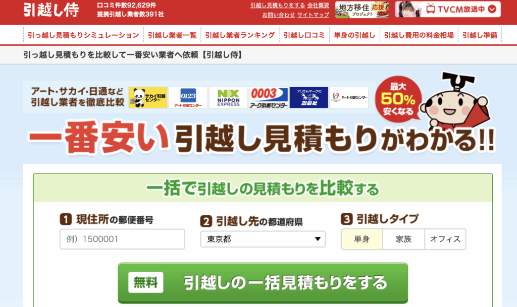 そこで、多くの人が利用してお得に引越しできているサービスが『引越し侍』。