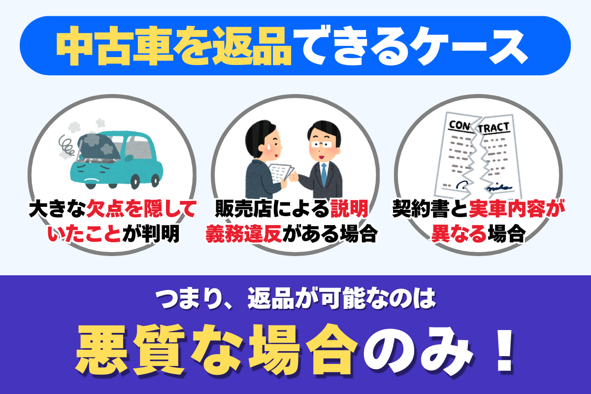 「壊れたから返品したい!」では通らないのが中古車の現実。