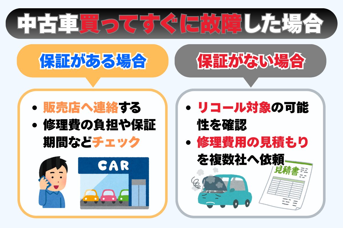 中古車は新車と違い、購入直後に不具合が起きることも少なくありません。