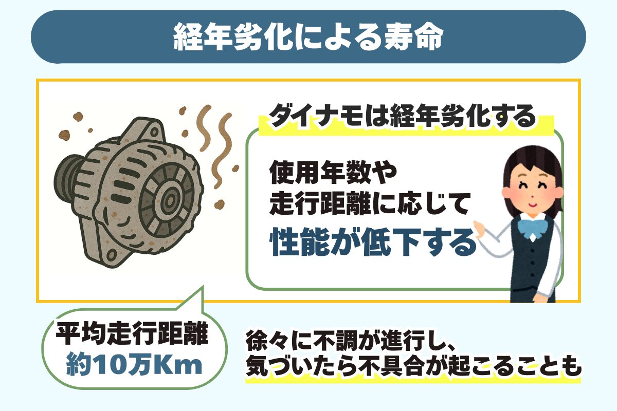 ダイナモは消耗部品を含むため、使用年数や走行距離に応じて性能が低下します。