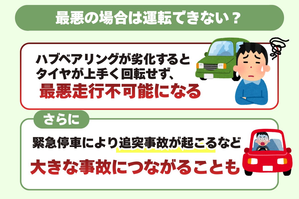 もし高速道路を走行中にハブベアリングが故障し、走行停止になると大きな事故につながる恐れもあります。