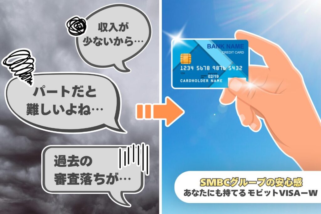 独自の審査基準により、クレジットカードの審査に不安がある方にもおすすめの「モビット VISA‑W」。