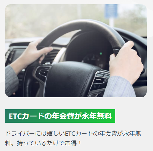 さらに、クレジットカードと同時に作れるETCカードも、年会費が永年無料なんです!