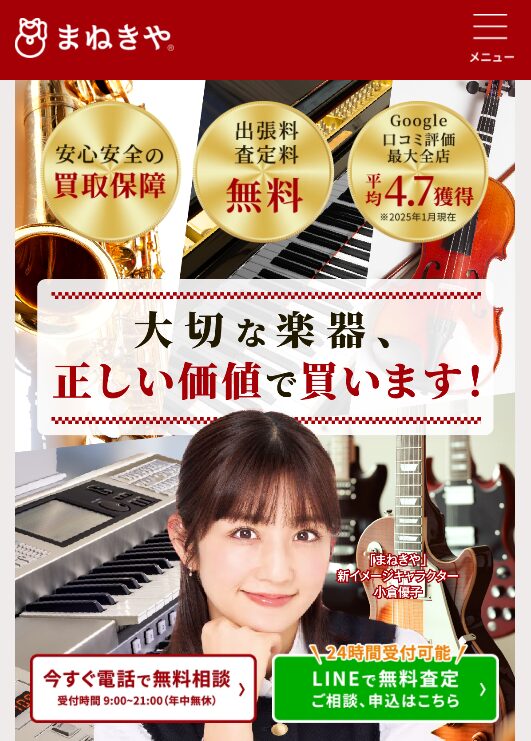 楽器の売却をもっと手軽にしたいなら、「まねきや」がおすすめです。