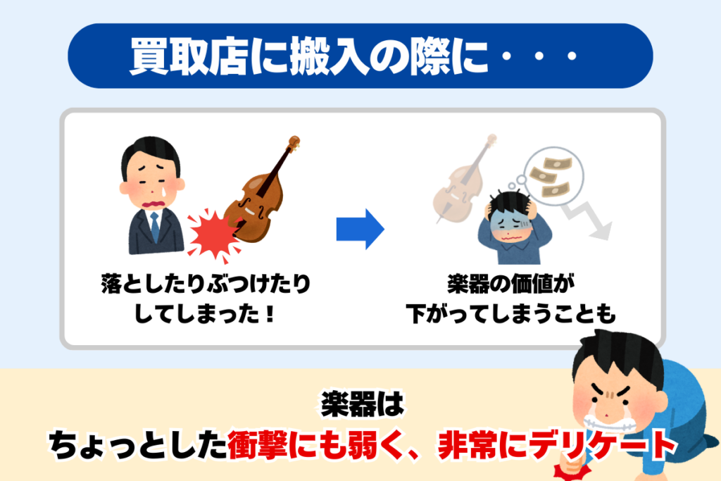 買取店への搬入の際に、落としたりぶつけたりすると、楽器の価値が下がってしまうことにもなりかねません。