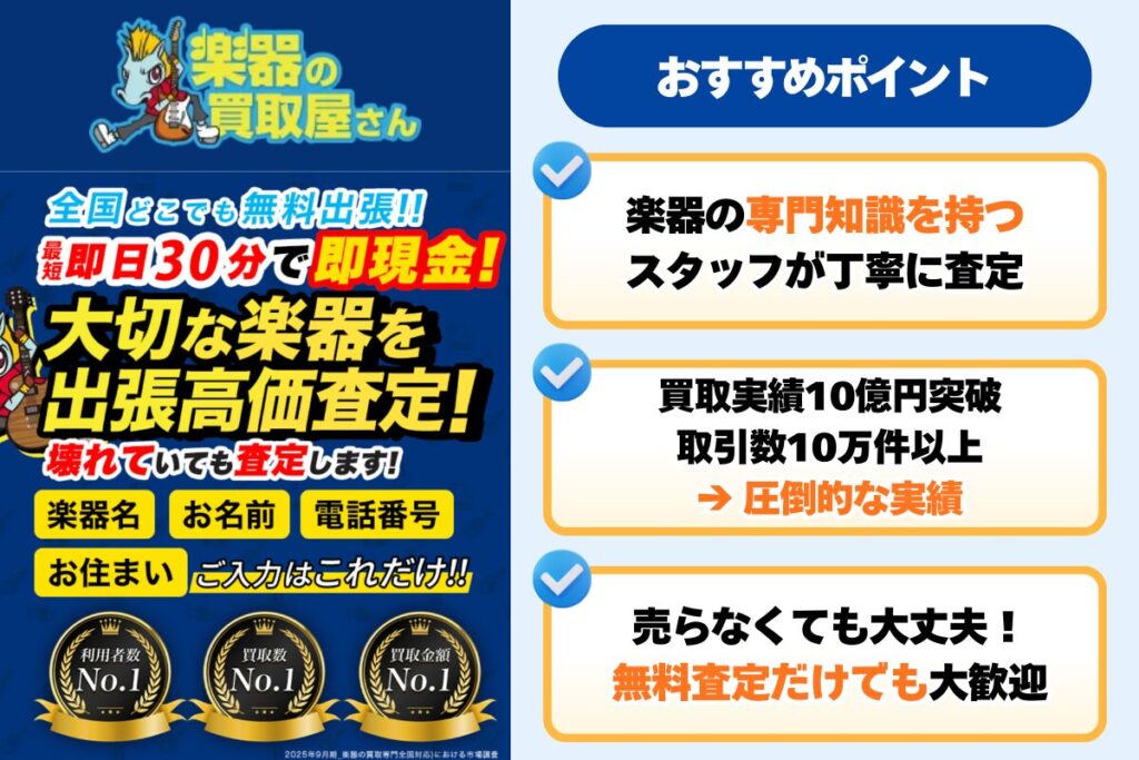 「楽器の買取屋さん」は、楽器専門の買取業者として10年以上の実績。