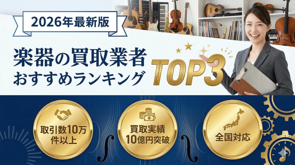 ここからは出張買取に対応している楽器買取業者のうち厳選して当サイトがおすすめする3業者をランキング形式で紹介いたします。