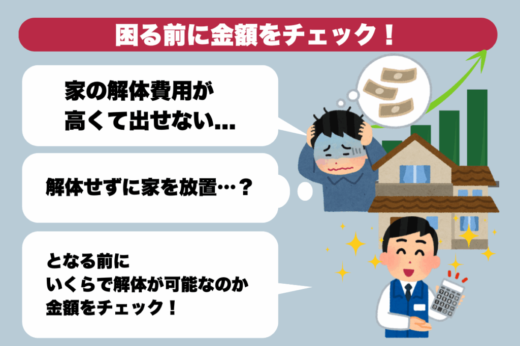費用が高くて出せない…となる前にいくらで解体が可能なのか金額をチェックしてみてくださいね。