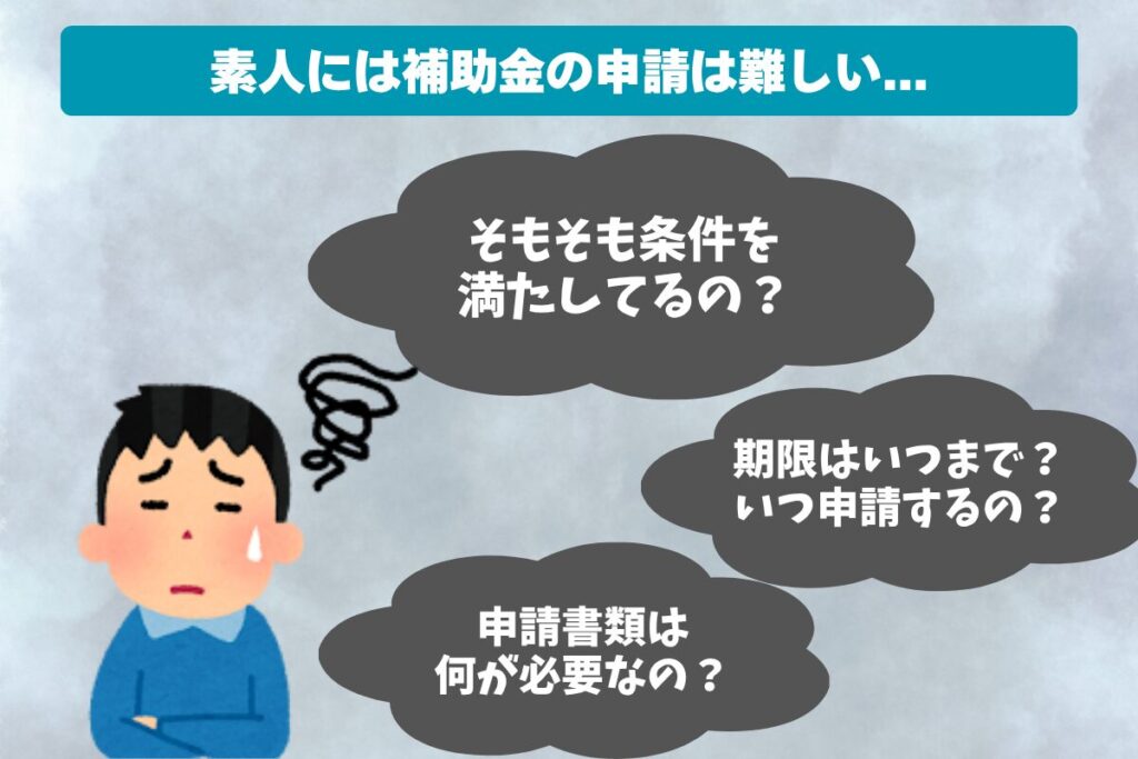 補助金には様々な条件があり、素人では申請が難しい場合もあります。