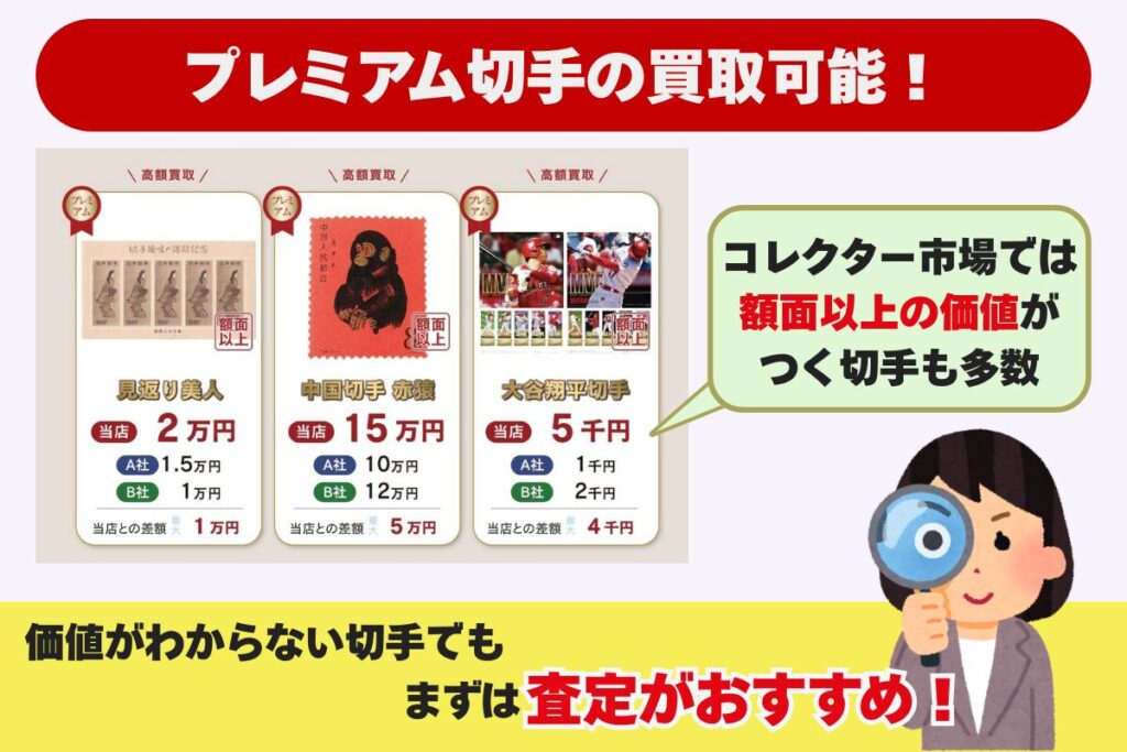 さらに、金券ショップでは取り扱っていないプレミアム切手も高額買取が可能。