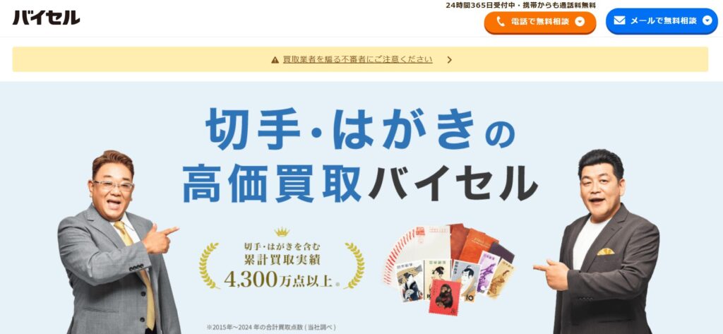 「バイセル」は、東証グロース上場企業が運営する切手・はがきの買取店です。