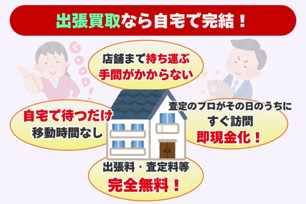 出張費や査定料、キャンセル料がすべて無料ですので、初めての方や買取に不安がある方にもおすすめです。
