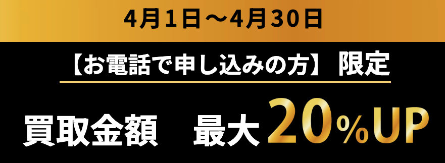 さらに今なら、電話での査定申し込みの方限定で買取額が最大20%アップするキャンペーンを実施中!