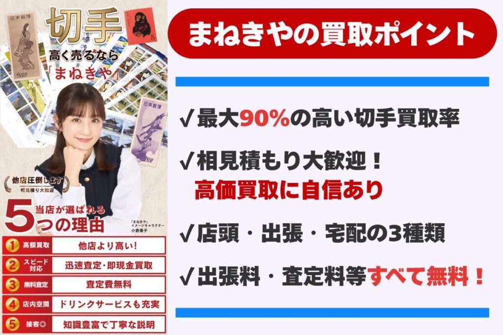 「まねきや」は、全国に店舗がある切手買取専門店です。