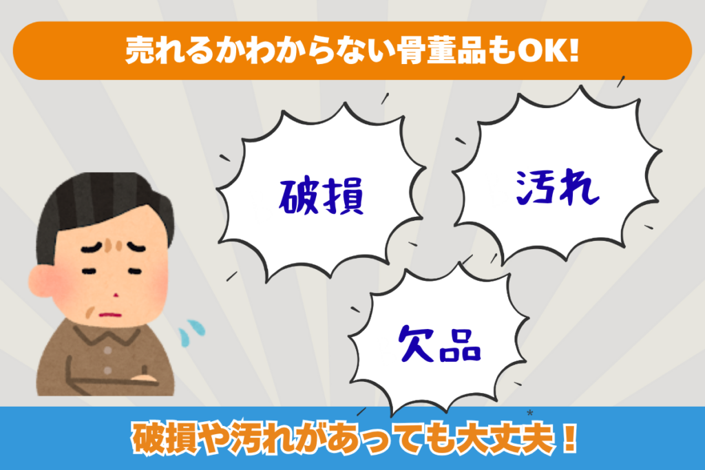 『福ちゃん』なら、傷や汚れがあっても、作家や価値が不明なものでも査定可能。査定だけでもOKなので、気軽に依頼してみましょう!